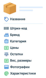 Товарная позиция может иметь следующие основные поля: